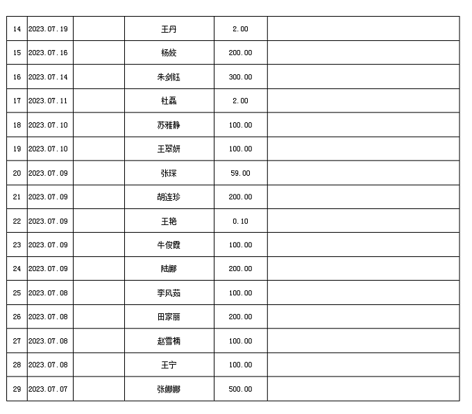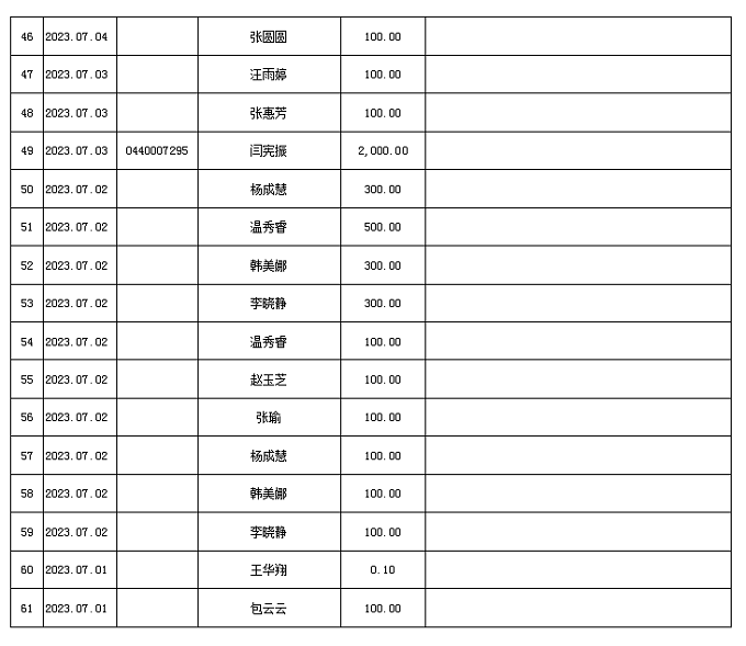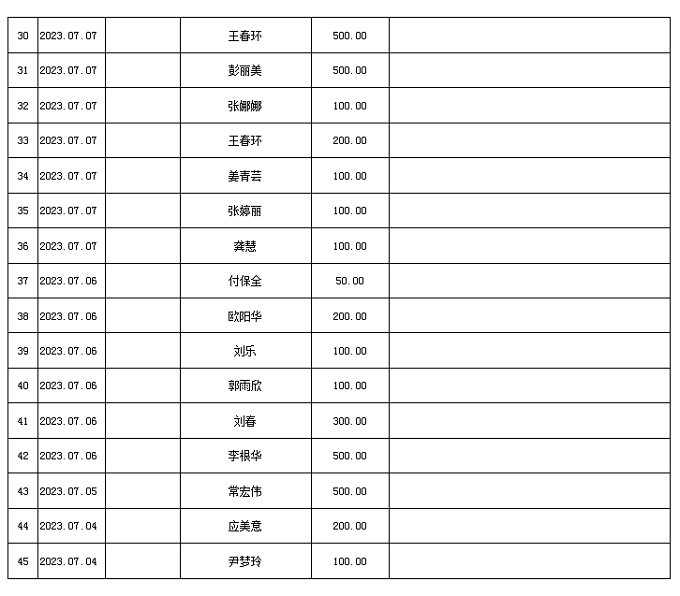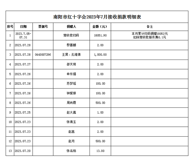 2023年7月接收捐款明细表