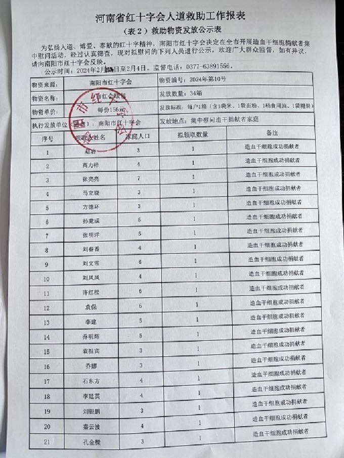 为弘扬人道、博爱、奉献的红十字精神, 决定在全市开展造血干细胞捐献者慰问活动,经过认真筛查,现对拟慰问的下列人员进行公示,欢迎广大群众监督,如有异议,请向 反映。
