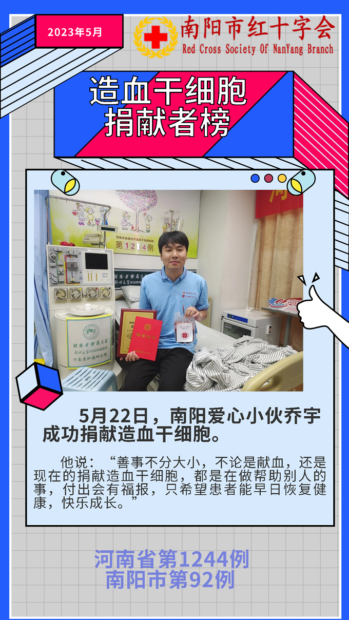 他们是芸芸众生中的普通人,平凡善良,心怀大爱,坚持无偿献血,捐献“生命种子”,是新时代的“活雷锋”。今年5月,南阳市共有3名爱心志愿者实现造血干细胞捐献,为远方的陌生人点亮生命之光。让我们走近他们,一起为他们点赞!