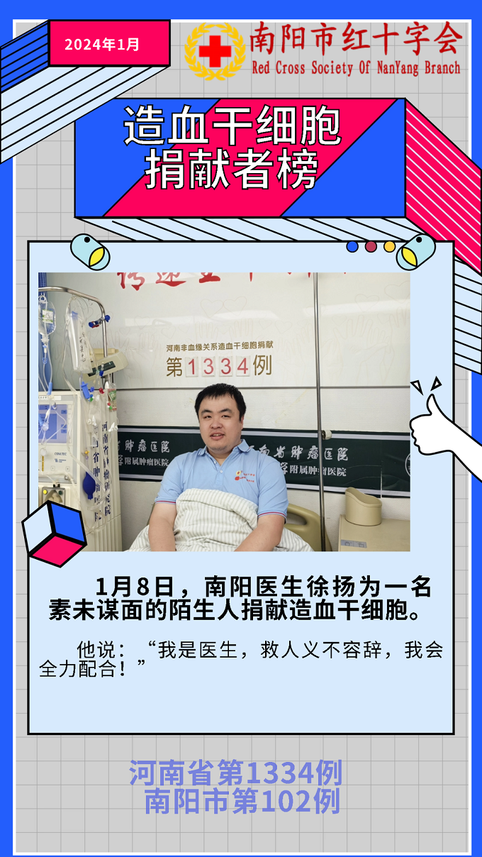 他们是芸芸众生中的普通人,他们平凡善良,心怀大爱,他们的造血干细胞将作为一份珍贵的礼物,被送给需要的人,为对方送去重生的希望。今年1月,南阳市共有2名爱心志愿者实现造血干细胞捐献,为远方的陌生人点亮生命之光。让我们走近他们,一起为他们点赞!